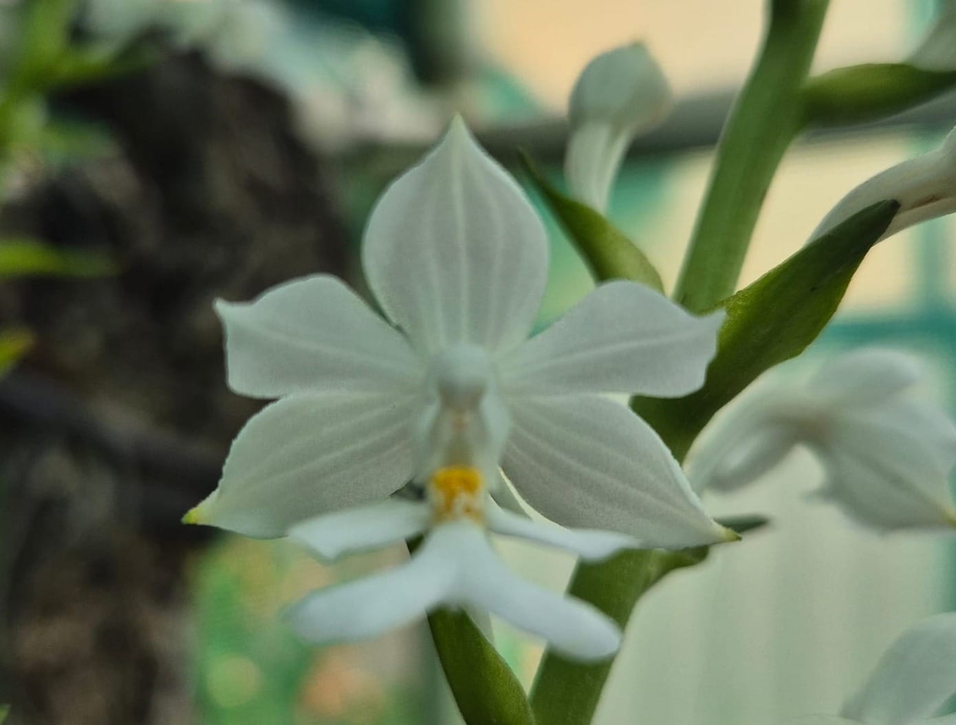 Air circulation is crucial but should be gentle to avoid drying out the plants. Use fans if needed, but never direct them straight at the orchids. The thin leaves of this plant are particularly prone to drying out in hot dry windy weather